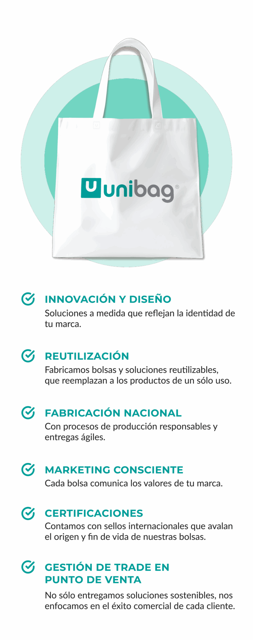 La Ley 21.100 prohíbe la entrega de bolsas plásticas de un solo uso en el comercio. En Unibag diseñamos bolsas de almidón de maíz y de Algodón para que tu marca cumpla con la normativa vigente y avance en el camino de la sostenibilidad.